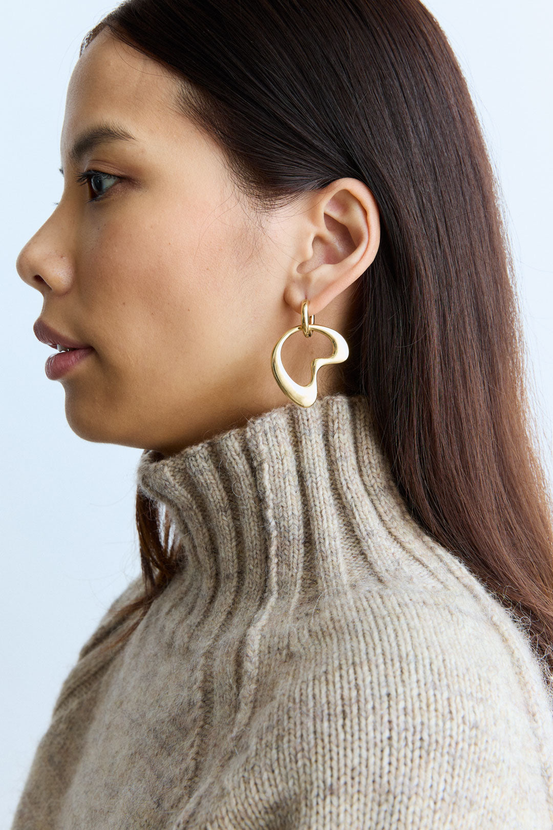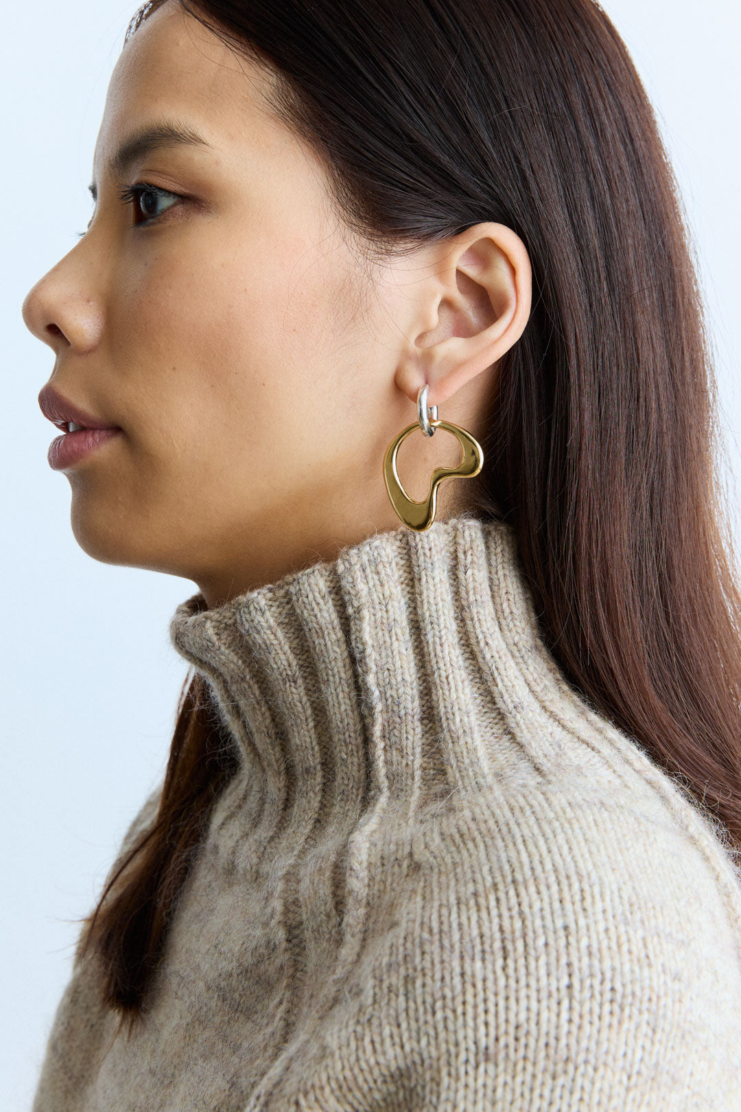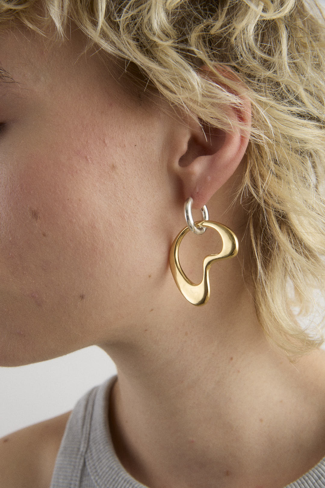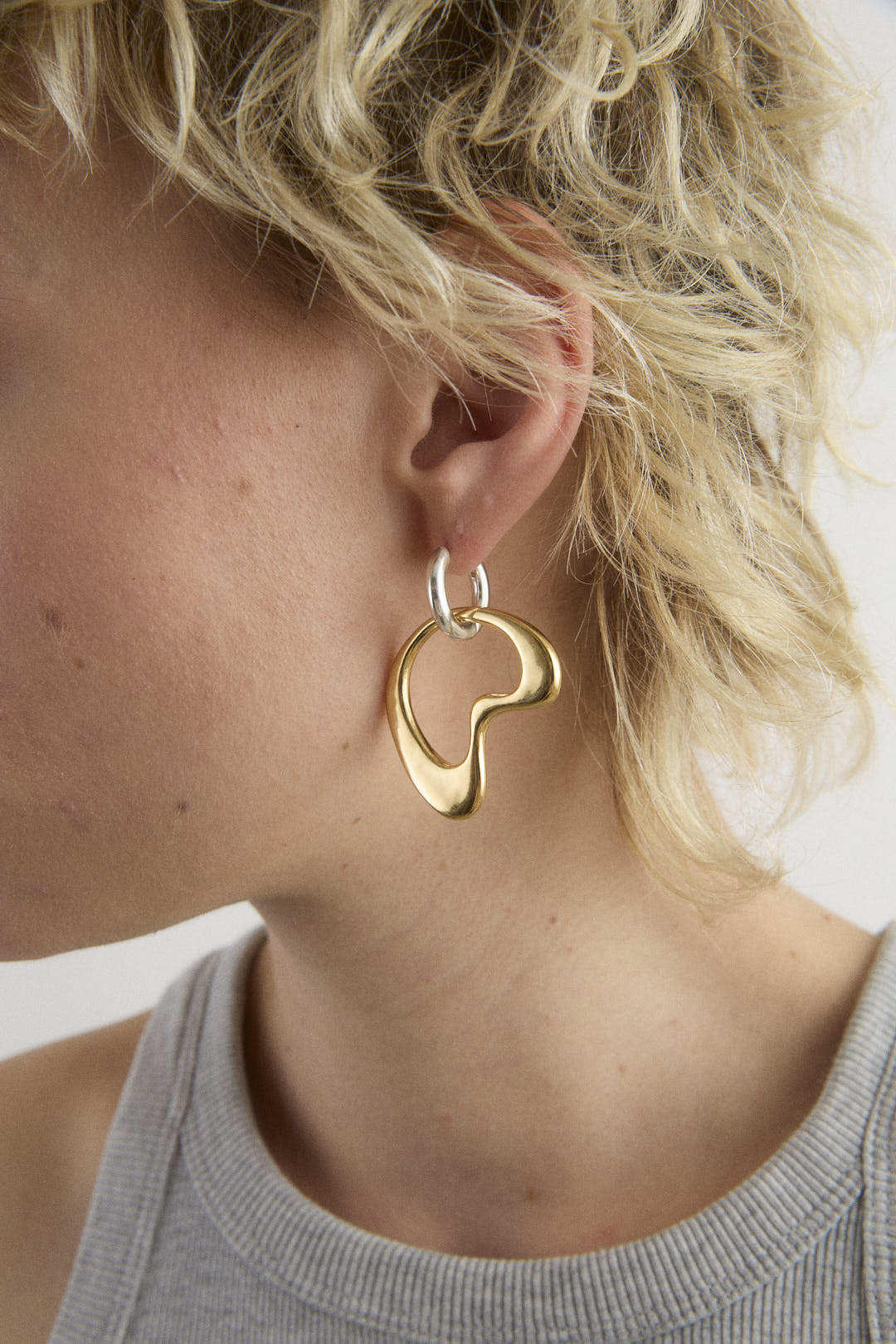 Earring composed of an organic pendant mounted on a round hoop.