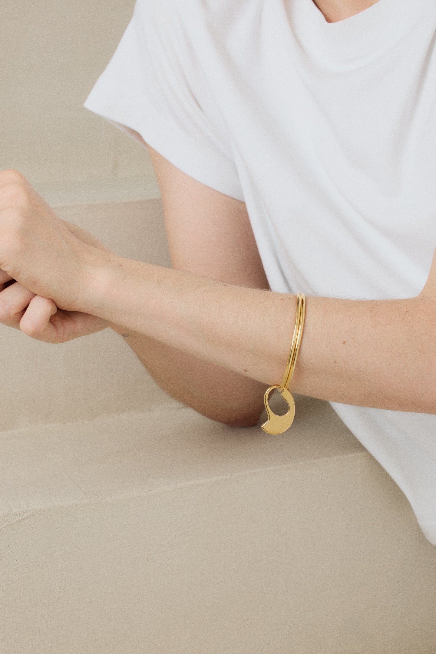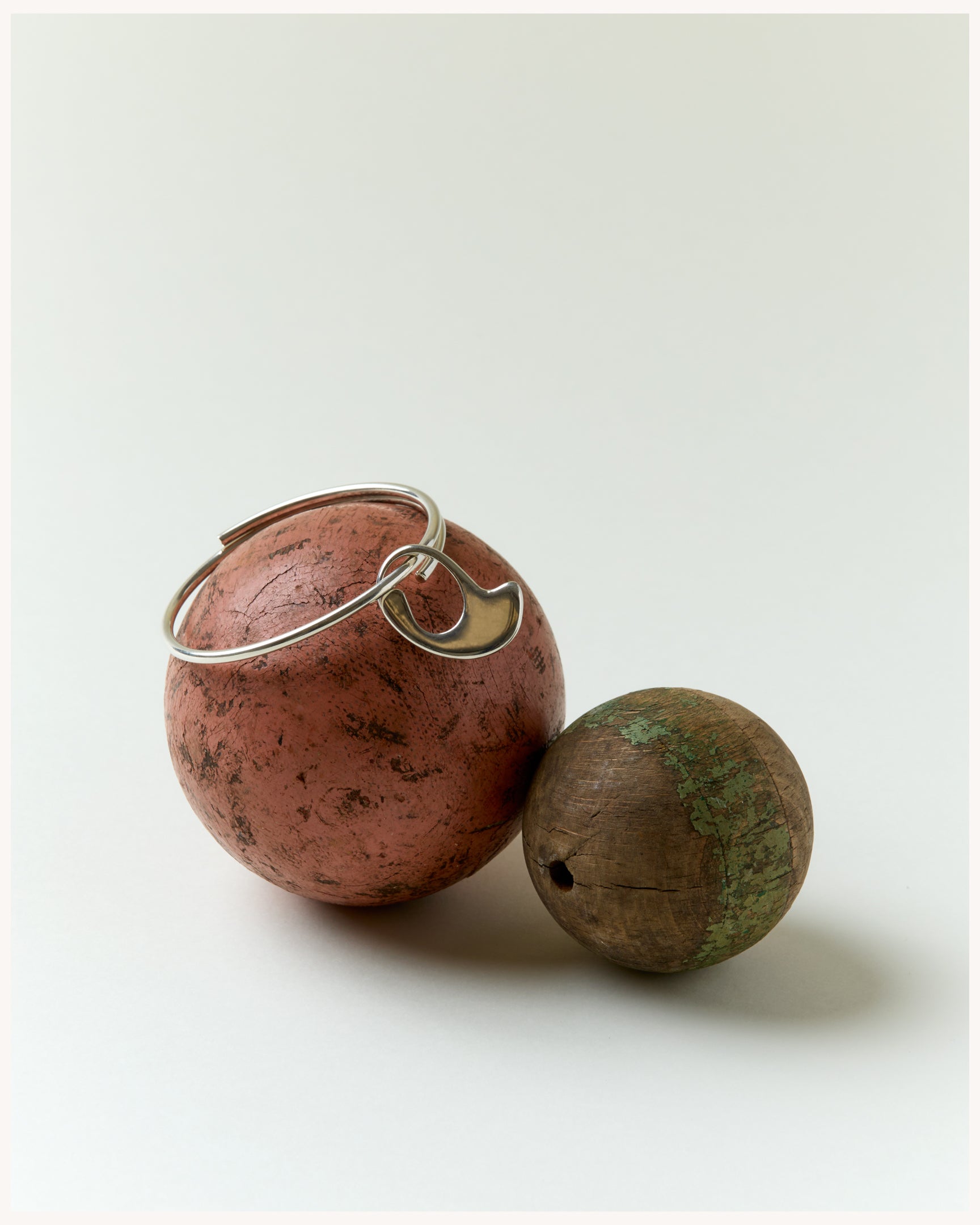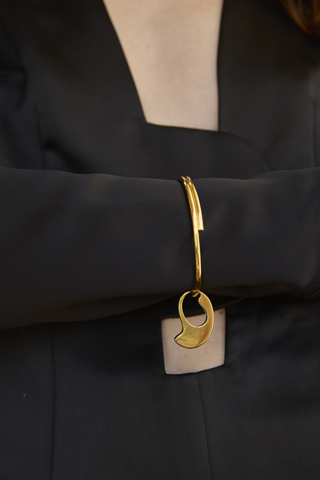 Organic pendant mounted on bangle like a spiral, adjustable.