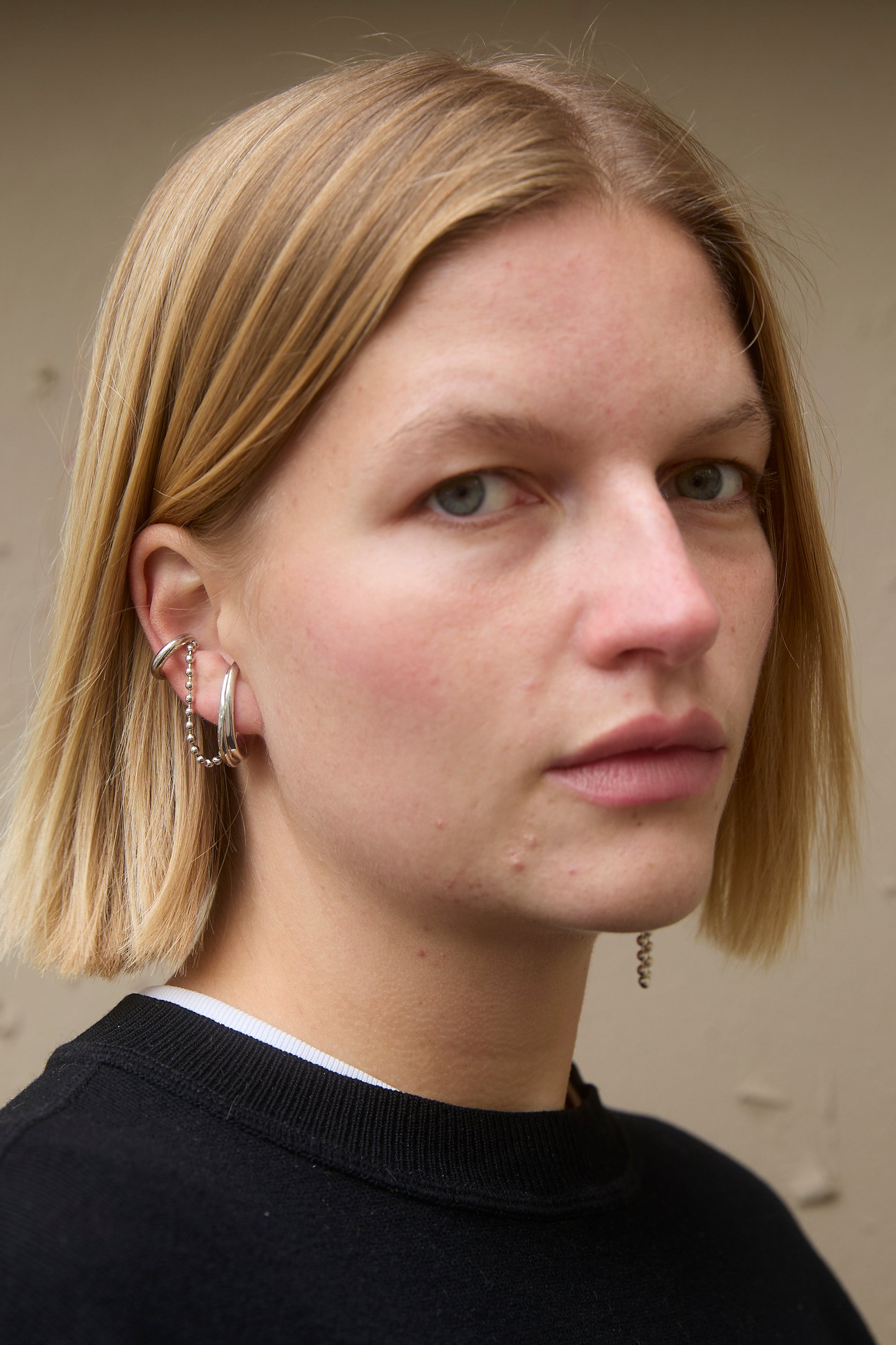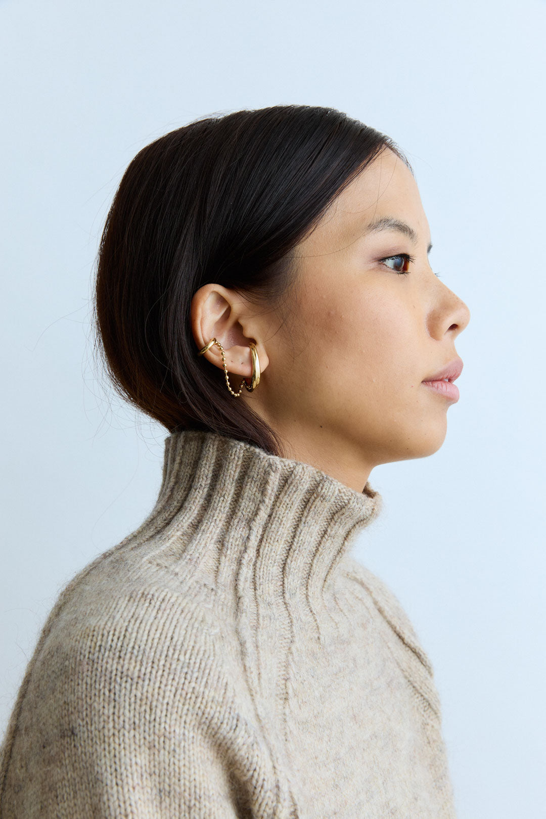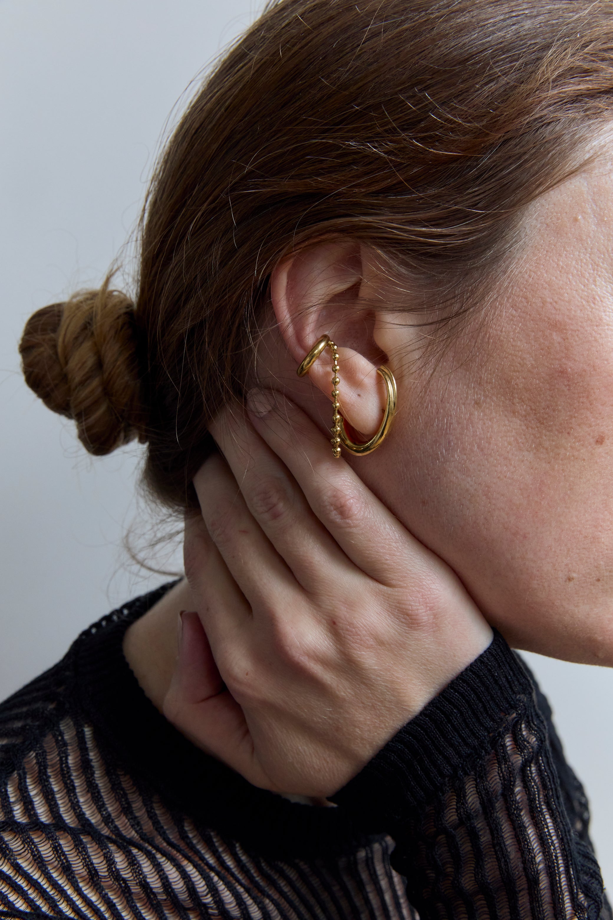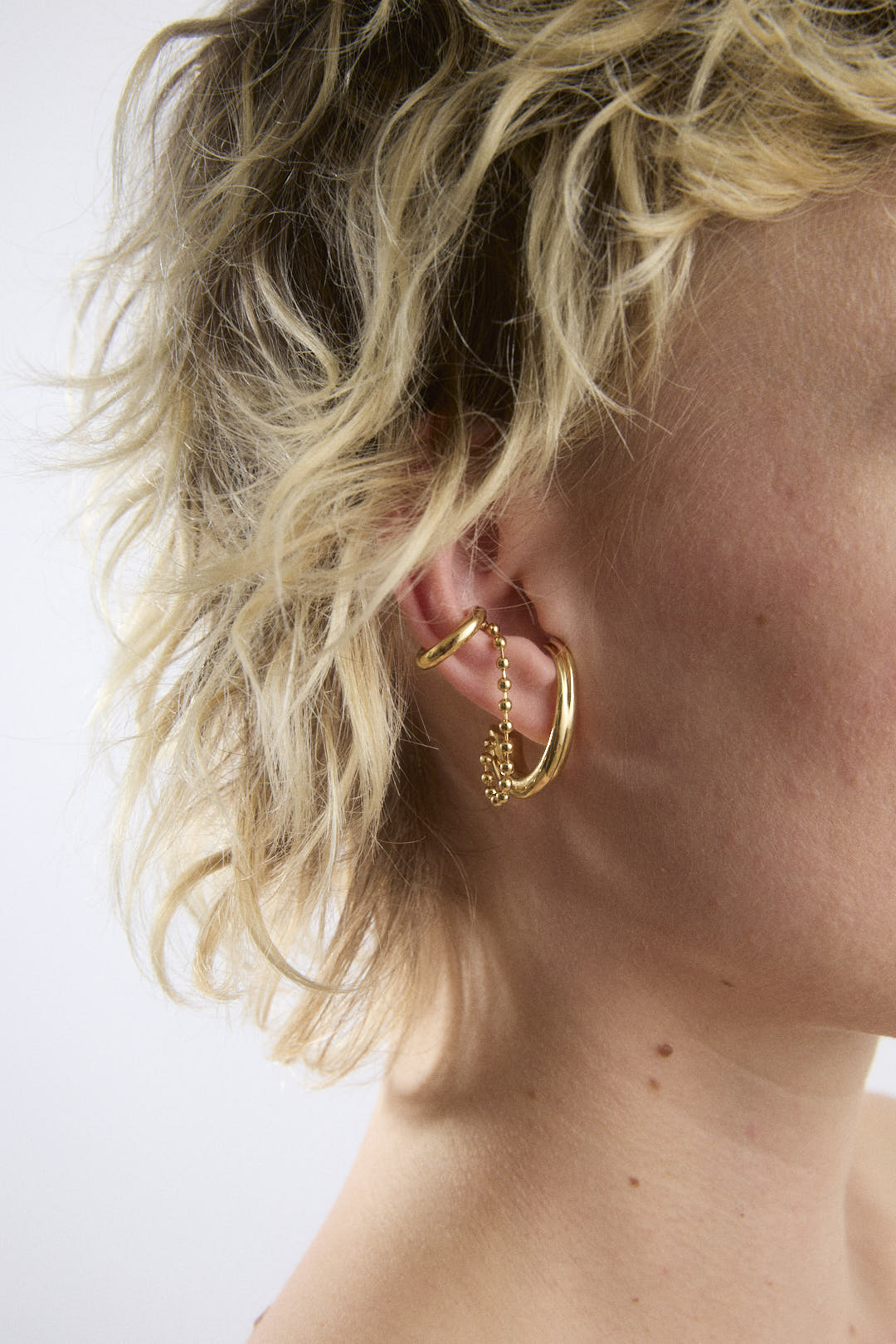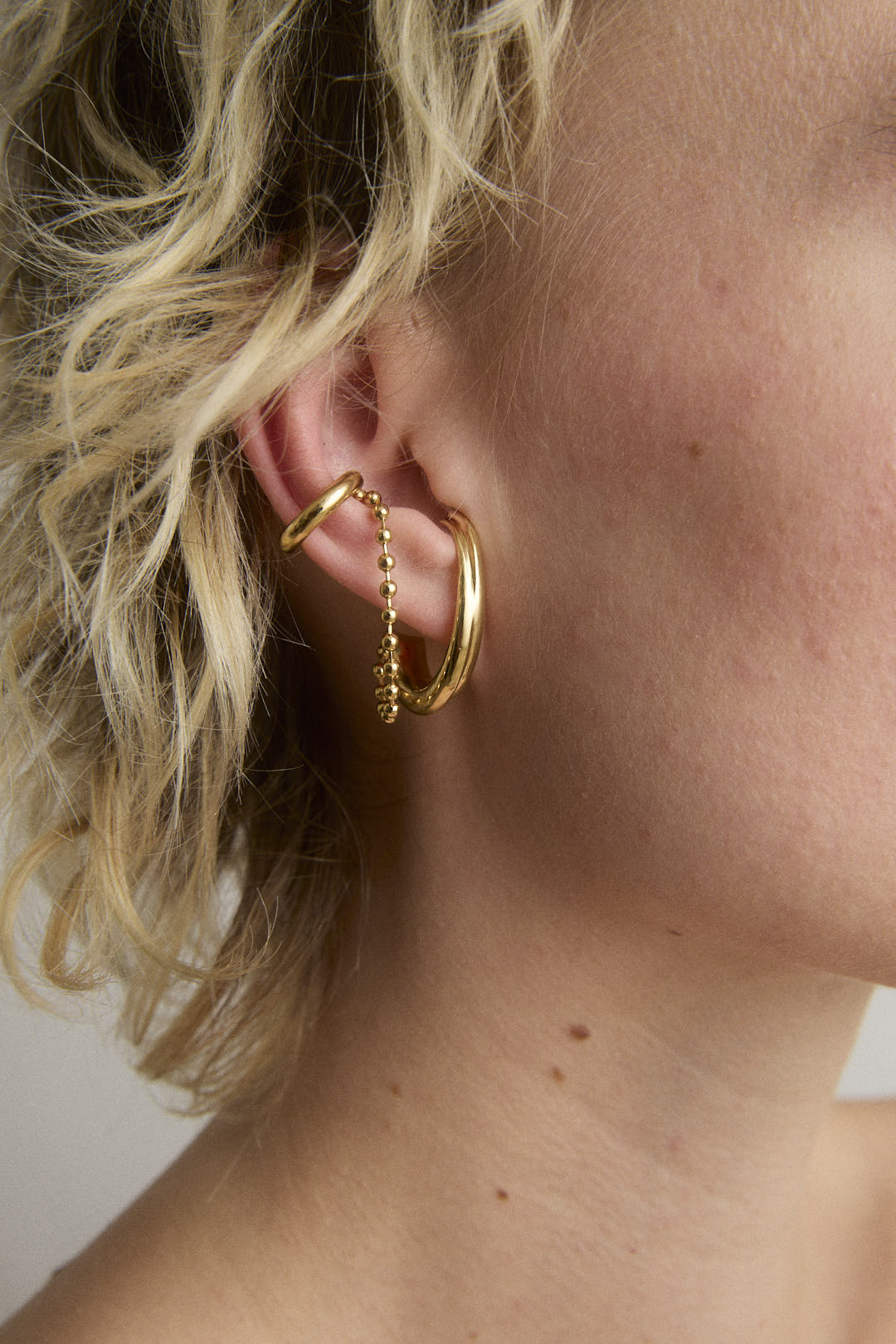 Earring & Earcuff united by a ball chain.